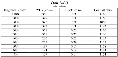 The Dell 2408 demonstrated outstanding contrast ratio and black level values for a 24” monitor. Same or close to the Eizo HD2441W (according to a popular prad.de test magazine).