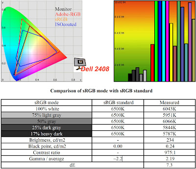 The Dell 2408 achieved the best value when calibrated to AdobeRGB.