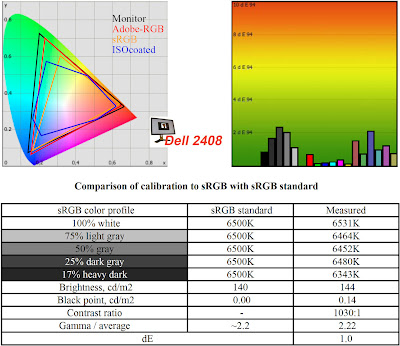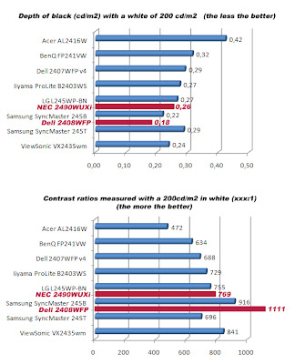 Look at the picture below. I just added the Dell 2408 and the NEC 2490 to the list of tested monitors. Although it’s a sort of approximation, the comparison is possible as the measurement equipment is the same.